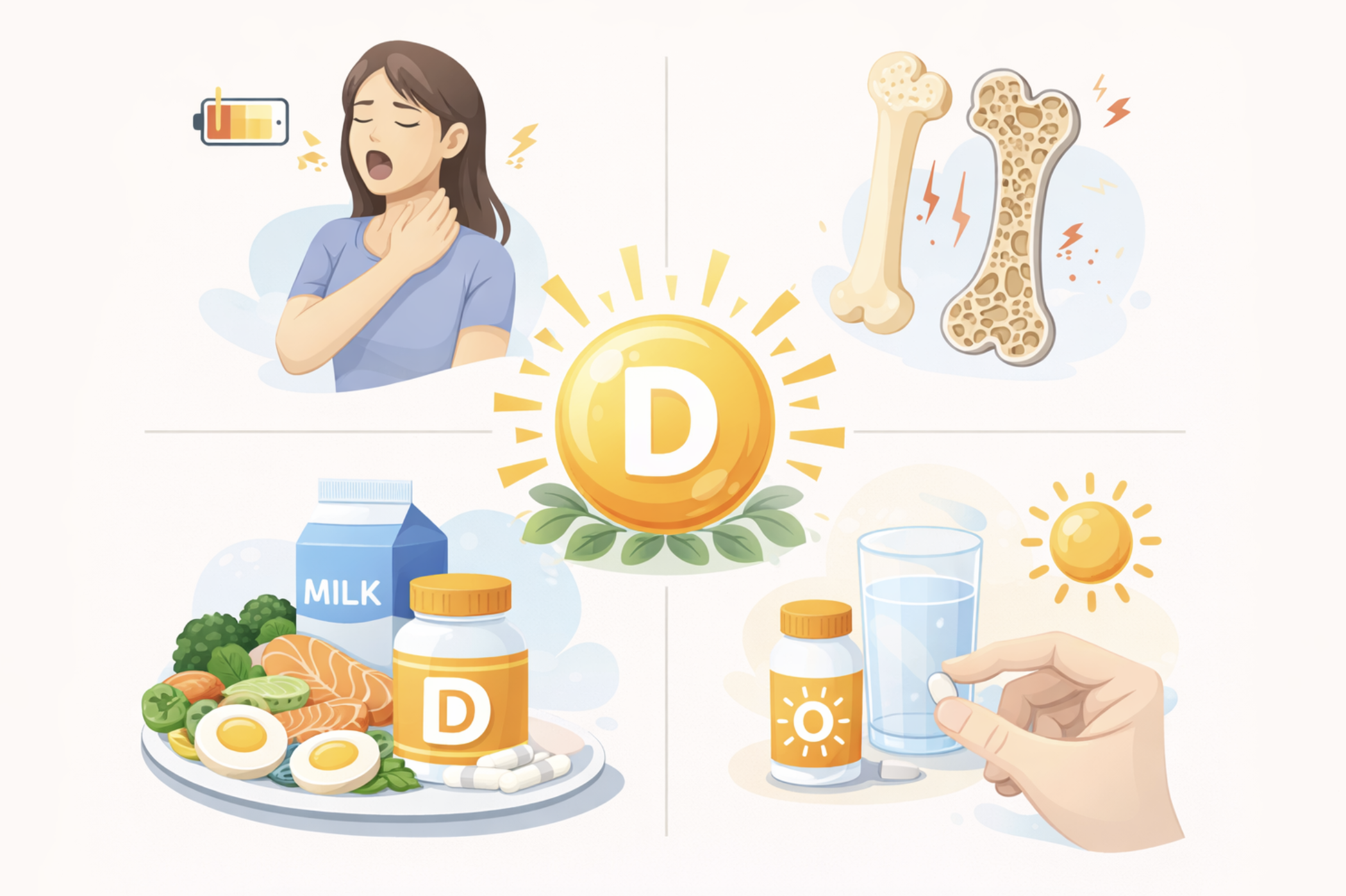| 부족 증상 | 만성 피로, 뼈·근육 통증, 잦은 감기, 우울감 |